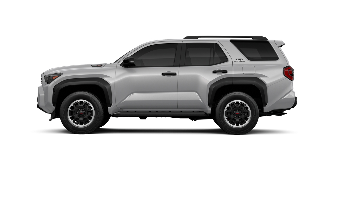 - Black honeycomb-style grille, mirror caps, door handles and overfenders; color-keyed rear spoiler; black "TRD OFF ROAD" and "4RUNNER" badges