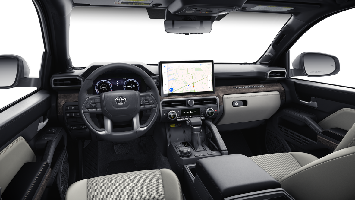 - "TACOMA" stamped power open-and-close tailgate with hands-free knee-lift assist and jam protection